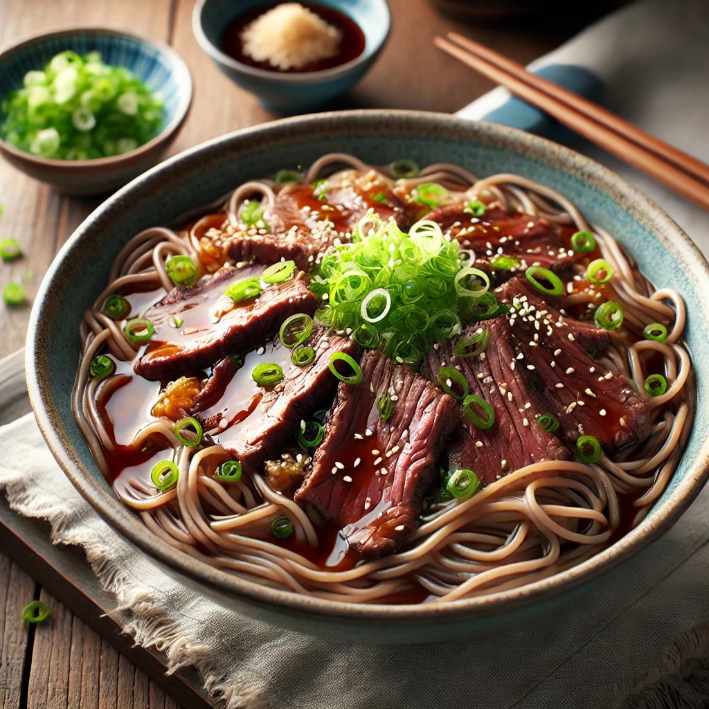 Making Hiyashi Niku Soba is simple yet packed with techniques to bring out its deliciousness. First, boil the soba noodles and chill them thoroughly in cold water. Meanwhile, simmer thinly sliced beef in a sweet and savory mixture of soy sauce, mirin, and sake. Arrange the chilled soba in a bowl, top it with the simmered beef, and pour over the special sauce. Garnish with green onions and grated daikon radish for an even richer flavor.